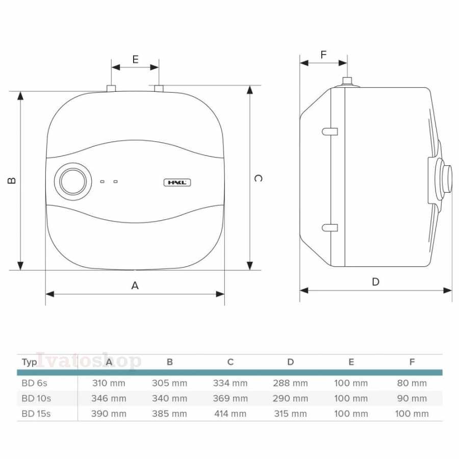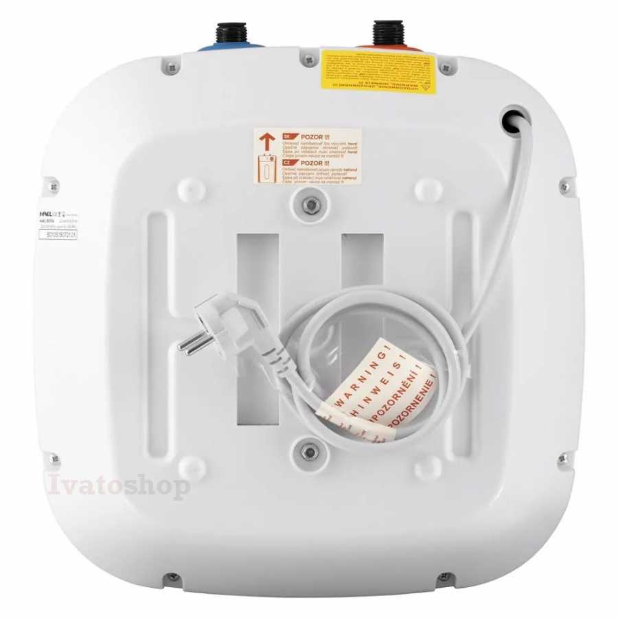 Elektrický ohrievač vody HAKL BD 10v s objemom vody 10 litrov je určený pre inštaláciu nad drez alebo umývadlo pripojovacími vývodmi umiestnenými dole. Dlhú životnosť zásobníka zaručuje dvojitá vrstva BLUE DIAMOND smaltu nanesená na hrubej oceľovej nádobe a zabudovaná anódová tyč. Sériovo montovaná tepelná poistka zabezpečuje vyšší stupeň ochrany špirály proti prehriatiu v krízových situáciách. Funkcia mrazuvzdornej poistky zabraňuje zamrznutiu vody v ohrievači. Súčasťou balenia zásobníkových ohrievačov vody HAKL BD 10v je poistný ventil a príslušenstvo pre montáž (držiak ohrievača, skrutky a kotvičky).