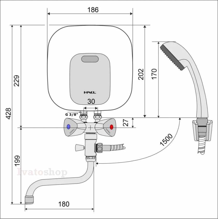 Pre jednoduchší nákup je el. prietokový ohrievač vody HAKL PL SET dodávaný spolu s vodovodnou beztlakovou nástennou klasickou batériou HAKL, s dĺžkou výtokového ramienka 20 cm.
