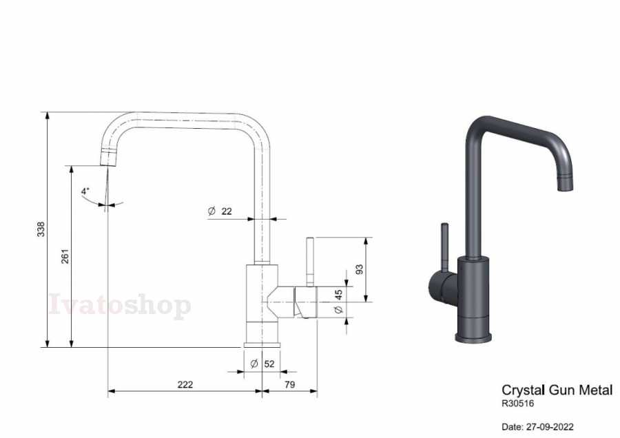 Kľúčové vlastnosti kuchynskej batérie Crystal Gun metal / šedý